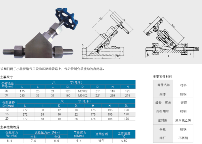 J25N-25、JD25F-64型外螺紋直流式截止閥
